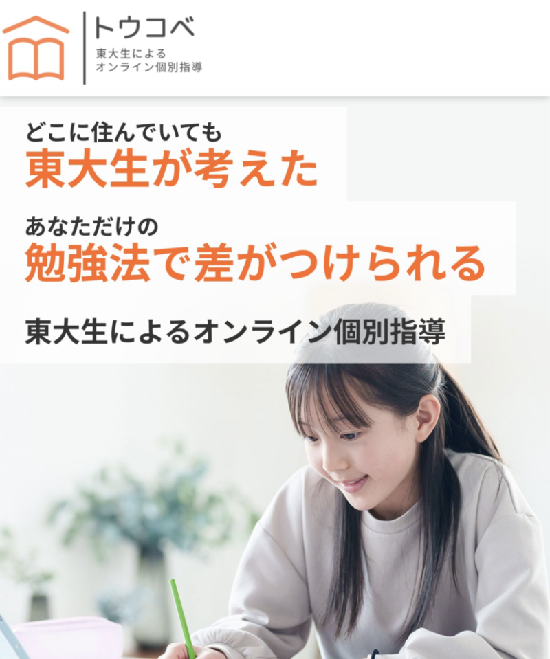 トウコベは、東京大学に在籍する学生が講師となり、小学生から浪人生まで幅広い層にオンラインで個別指導を行うサービスです。